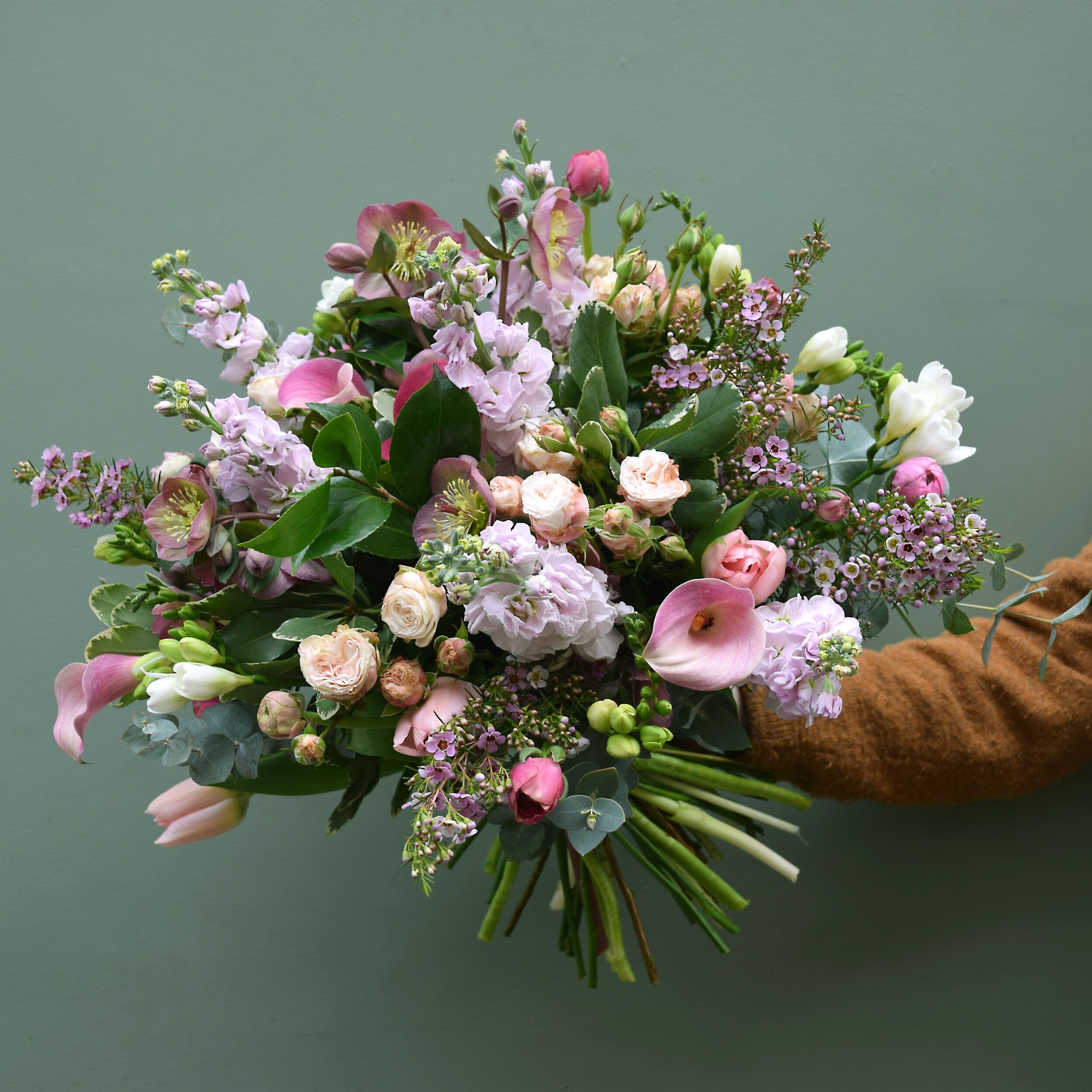 We tie our bouquets with natural seagrass twine or a hessian sash knot, dressed simply in all-white tissue and paper wrapping, which is recyclable and biodegradable.