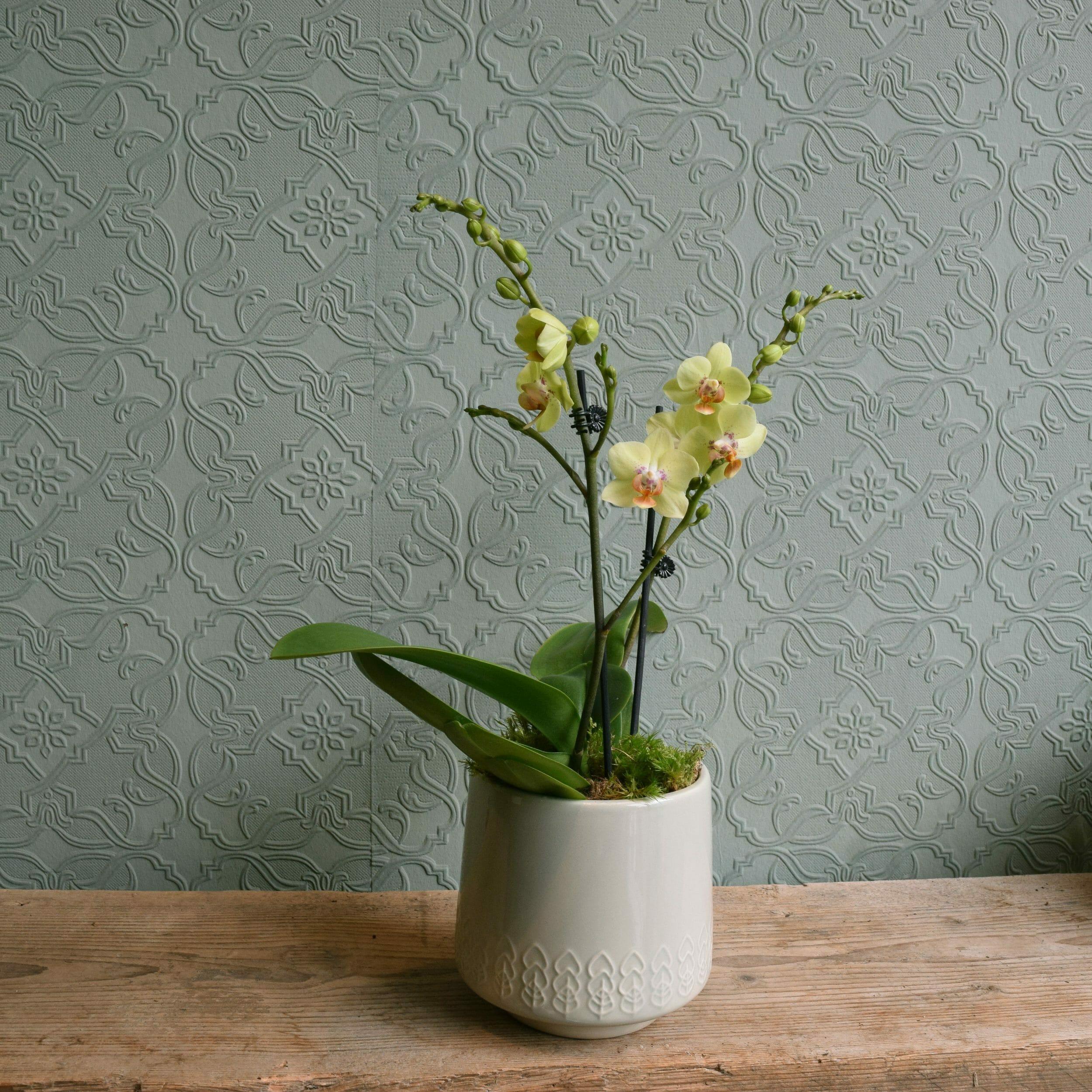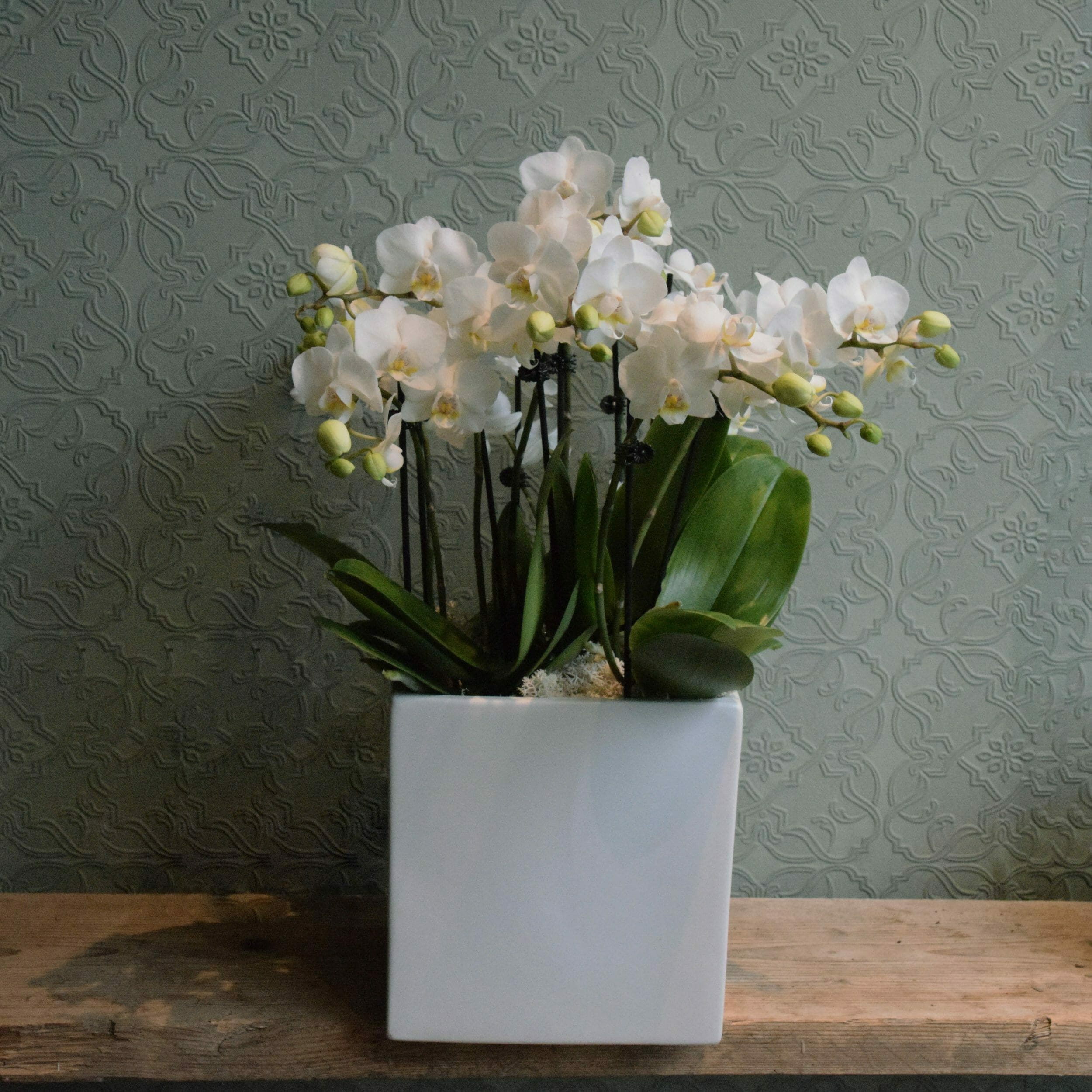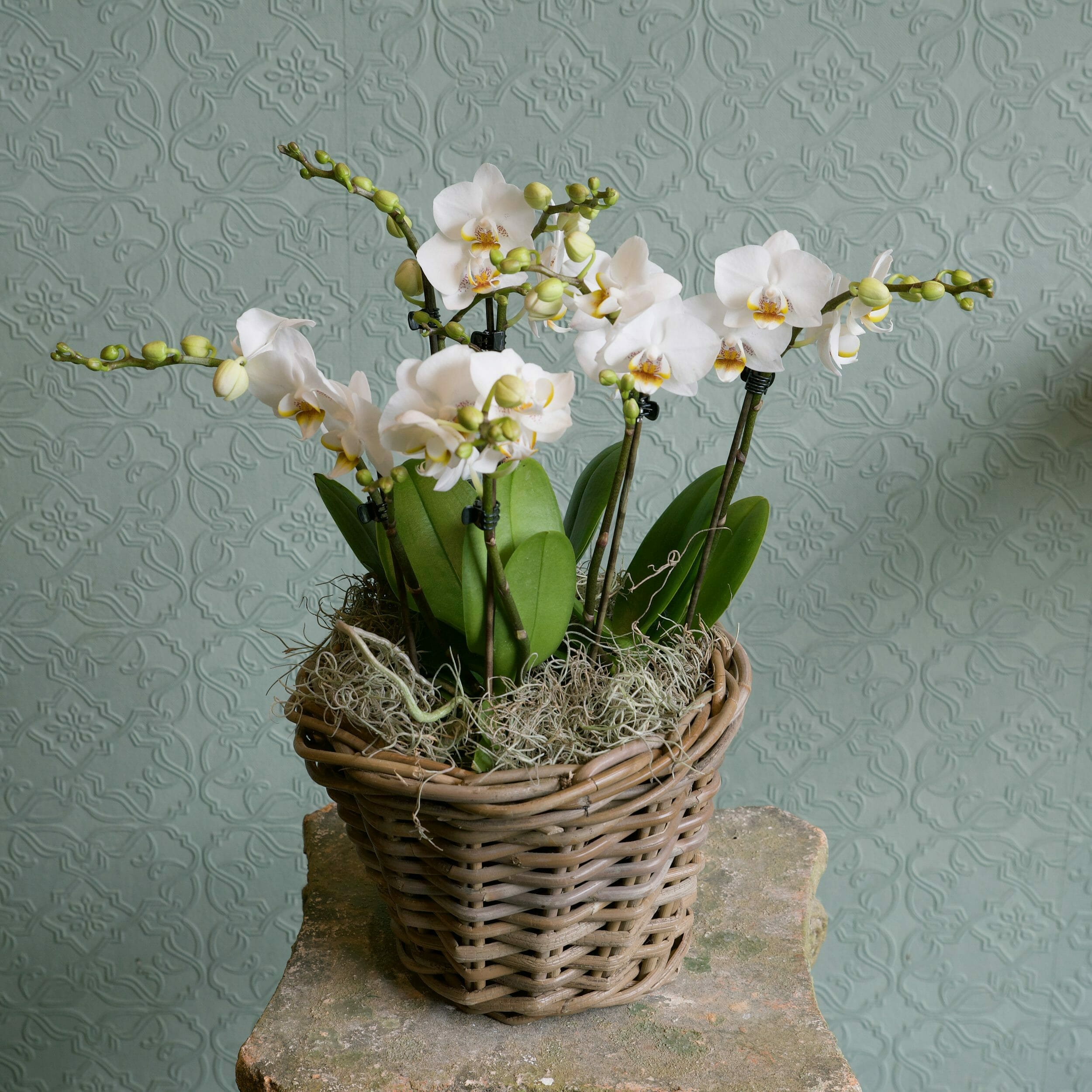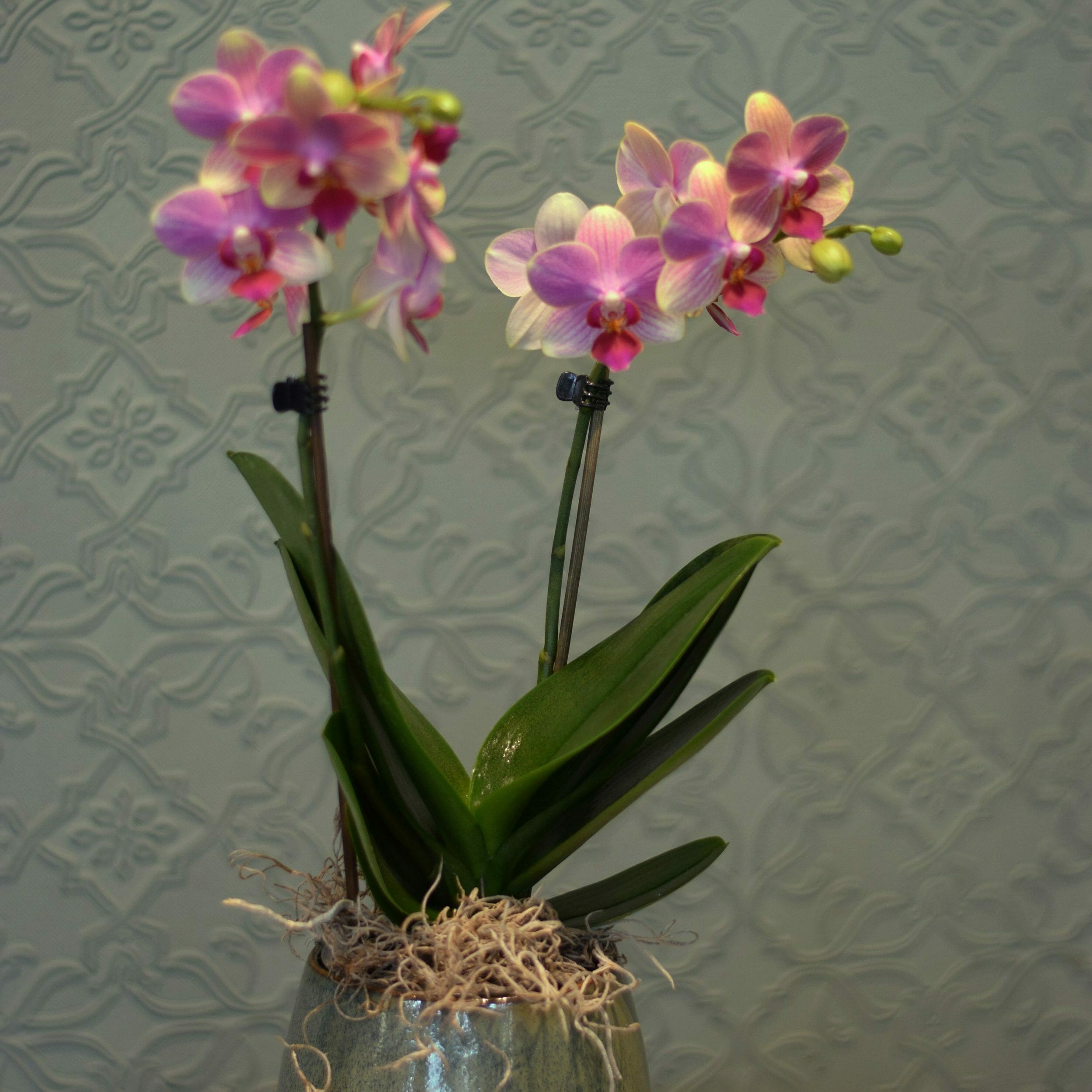 Our photographs will give you a sense of what our mini orchid arrangements look like. Please note that the volume of flowers adapts to the number of plants you choose.