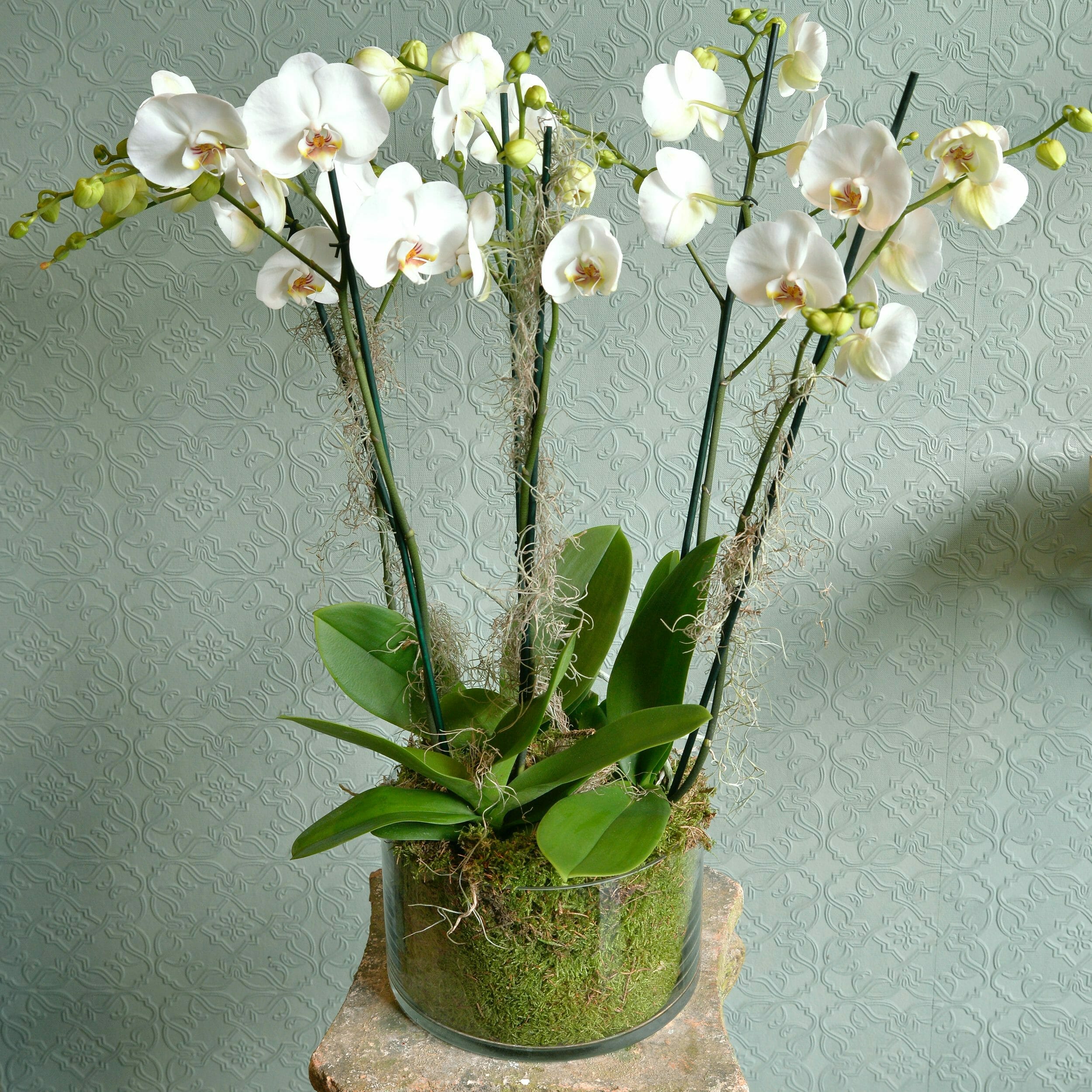 Our photographs will give you a sense of what our orchid plants look like. Please note that the volume of stems adapts to the number of the orchids you choose.